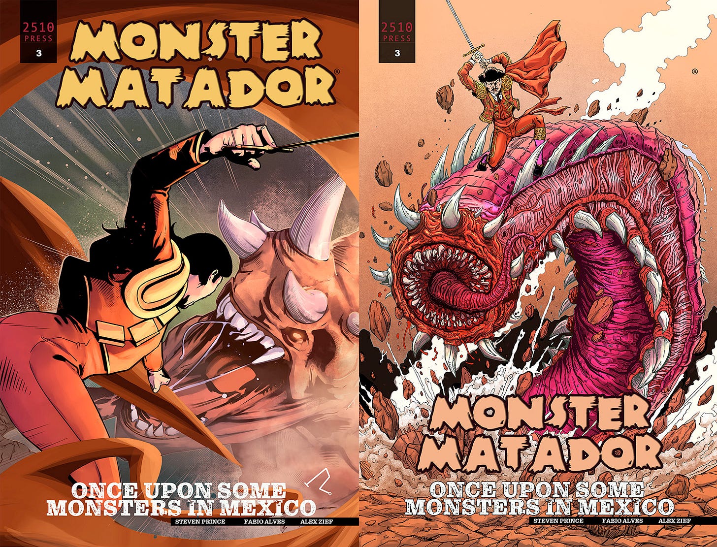 On the Monster Matador front, our pre-launch page for Monster Matador: Once Upon Some Monsters in Mexico #1-3 is LIVE. Click here to be notified on launch. Right now we are aiming for late-May. Here’s a look at the main cover and our Artist variant featuring Puis Calzada. Puis is best known for his work on CULT OF DRACULA for Source Point Press, Fangoria, and HELL ON SHIRTS.
